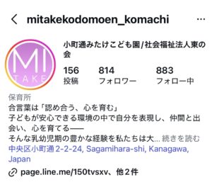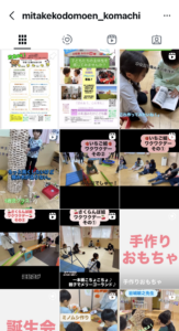 ★Instagramをやっています★ 2025 / 10 / 25 みたけからのお知らせ, みたけの活動 目次 - シェア 小町園ではInstagramを随時更新しています。 日頃の保育の姿がたくさんありますので、ぜひ覗いてください♪ 作成者 : info@mitake-komachi.com « 新ホームページが出来ました!